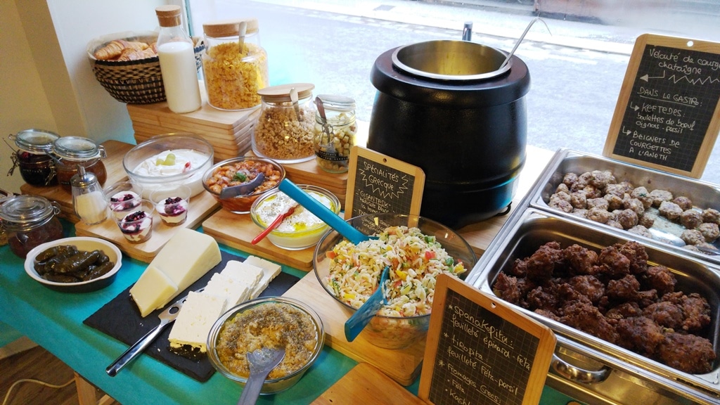 Vous connaissez certainement Athina, cette cantine greco-moderne qui sert d’excellentes pitas la semaine (je vous en parle dans un article, à relire ICI). C’est aussi un brunch à volonté le dimanche midi, l’occasion de goûter à différentes spécialités grecques faites maison.