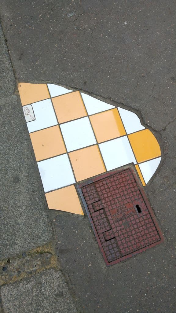Il y a un ptit bout de carrelage blanc et noir au niveau du croisement entre la rue duguesclin et la rue dunoir =)