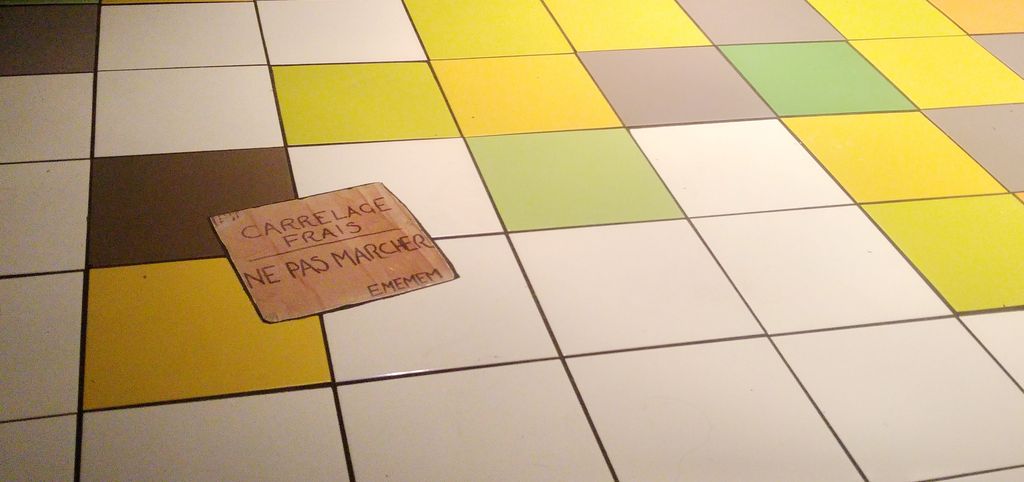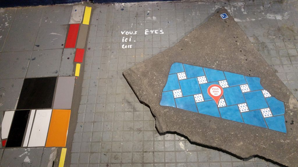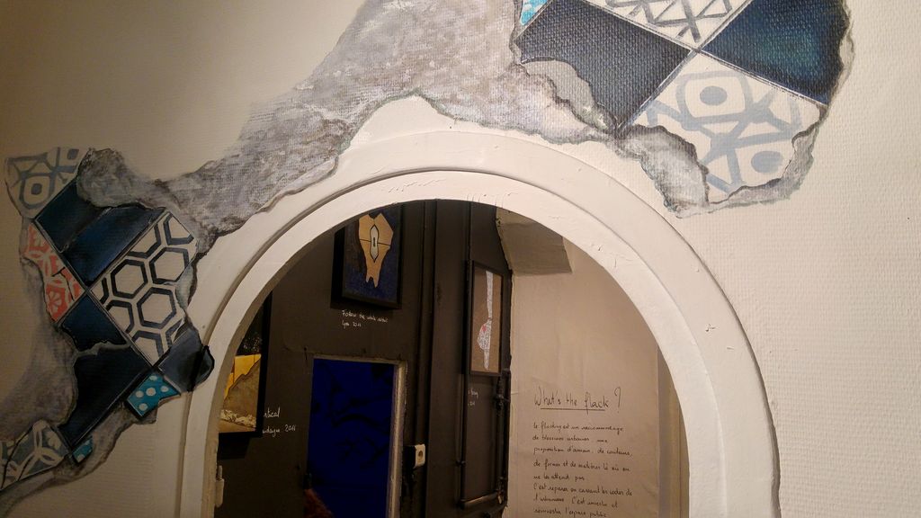 Prenez votre temps, ne loupez aucune miette, explorez chaque recoin de la taverne qui cache sa signature : truelle glorifiée, flacking à éplucher, bitumothèque… Comme dans la rue, c’est un mini jeu de pistes qui s’engage. Généreux dans l’âme, il met aussi à disposition des carreaux à emporter pour flacker soi-même devant chez soi ! Attention, son expo est éphémère et ne dure que jusqu’au 29 mars.