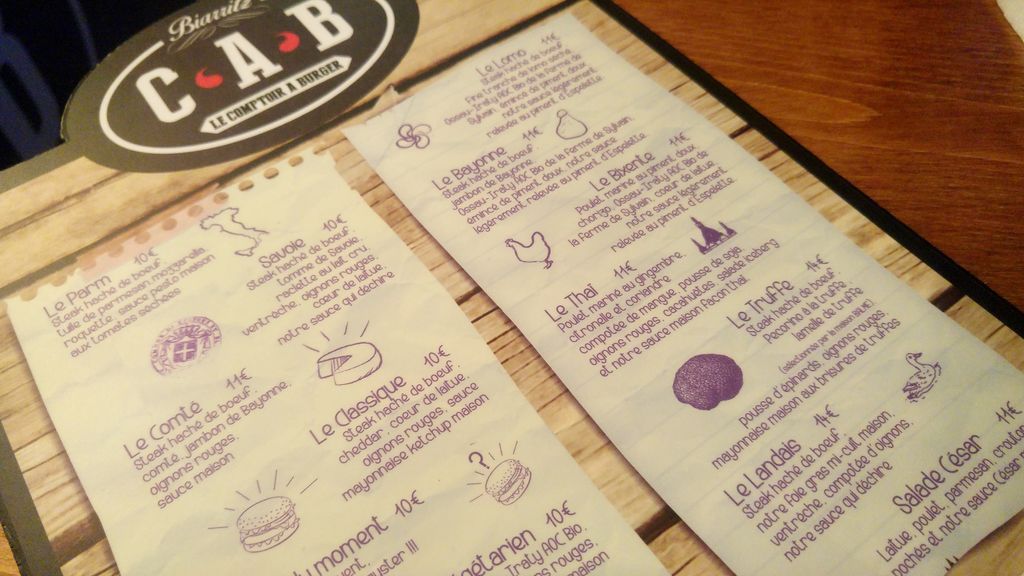 Décidément, on est vraiment bien accueillis au pays basque. Sourire et bonne humeur sont de rigueur dans ce repère à burgers. Dès l’entrée, l’odeur de la viande grillée qui s’échappe de la cuisine ouverte fait grave saliver. L’originalité ici, ce sont les recettes de burgers mettant en valeur les produits locaux, le tout dans un pain artisanal. Comme le burger au lomo et Ossau Iraty fermier (11 €) ou le burger Bixente au chorizo et poulet mariné au piment doux (11 €), accompagnés de chips croustillantes faites maison (4 €). Fondants et riches en goût, ce sont d’excellents burgers de qualité ! La note : 31,50 € pour 2 avec boissons.