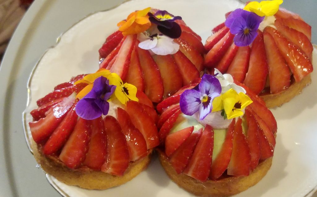- Torü : tarte aux fraises à la crème d’amande, Chantilly au chocolat blanc et jasmin