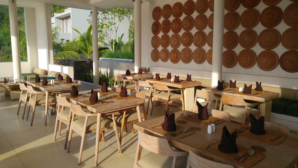 Ne cherchez pas d’alcool au bar, il n’y en a pas. Contrairement à Bali qui est la seule île hindoue d’Indonésie, la culture de Lombok est sous dominante sasak musulmane. Cela n’empêche pas la très serviable et souriante équipe de l’hôtel de proposer de bons mocktails. Dont le warming embrace, composé de citronnelle, gingembre, cannelle, anis étoilé, clou de girofle et autres épices locales. Que je vous conseille que boire au bord de la piscine à débordement au-dessus de la palmeraie environnante, en attendant le coucher de soleil. Idyllique !
