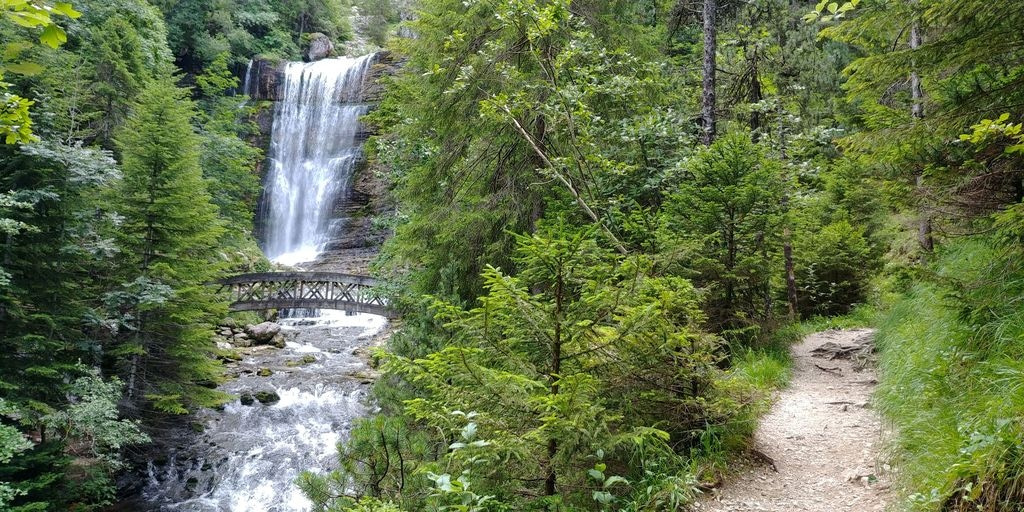 Après avoir apprécié la cascade au plus près, le chemin continue sur un pont de bois. Au milieu des sapins, il donne un côté romantique au lieu. Nous avons ensuite continué la balade dans la forêt pour rejoindre le point de départ, en mangeant quelques fraises des bois. Mais vous pouvez grimper encore plus à flanc de montagne pour aller voir une 3ème cascade : attention, cette partie semble plus escarpée et en pente.