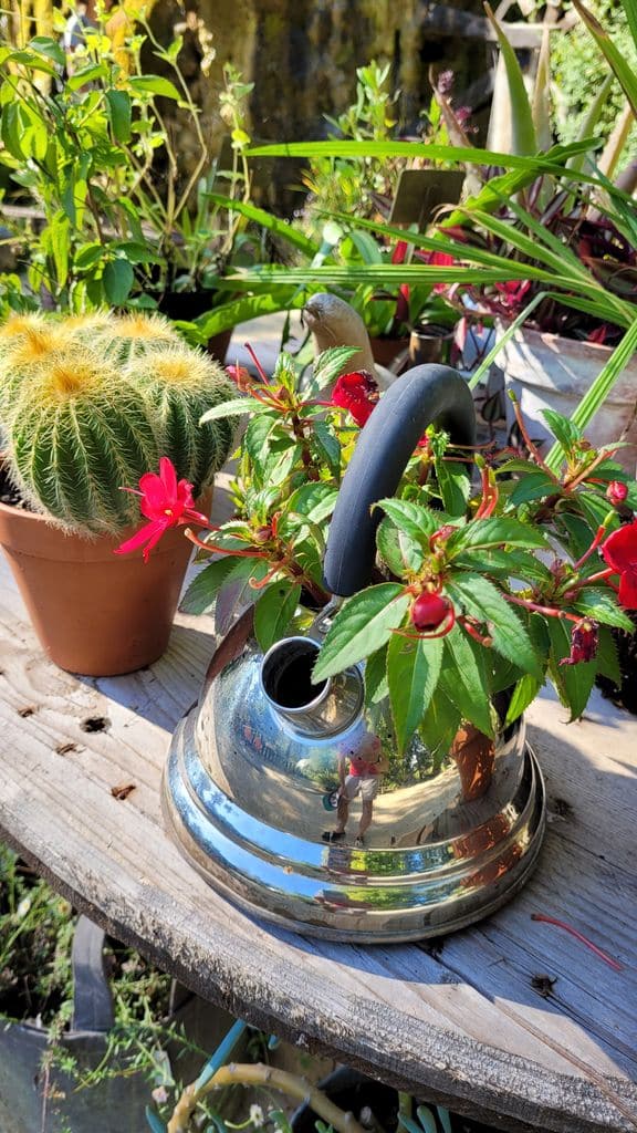 Tout est soigné. Autant les différentes ambiances des espaces que les mises en scène avec les nombreuses espèces de fleurs et d’arbres. Et j’ai surtout beaucoup aimé le détournement d’objets : anciennes baignoires, théières, pots originaux… Même les barrières de sécurité sont en tuyau d’arrosage, original !
