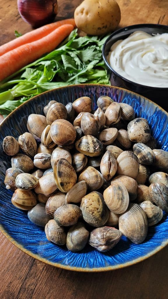 LES INGRÉDIENTS POUR UNE CHAUDRÉE AUX PALOURDES DE 4 PERSONNES